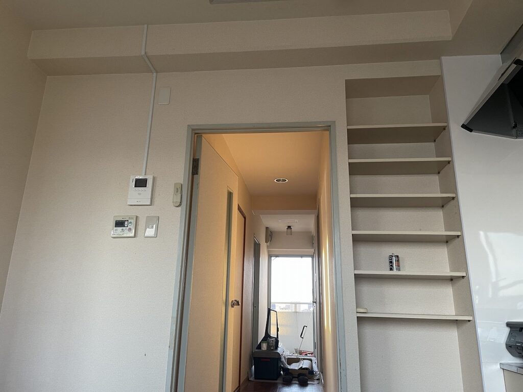 露出配線のモールを撤去したのち、クロスの補修を数か所行いました。