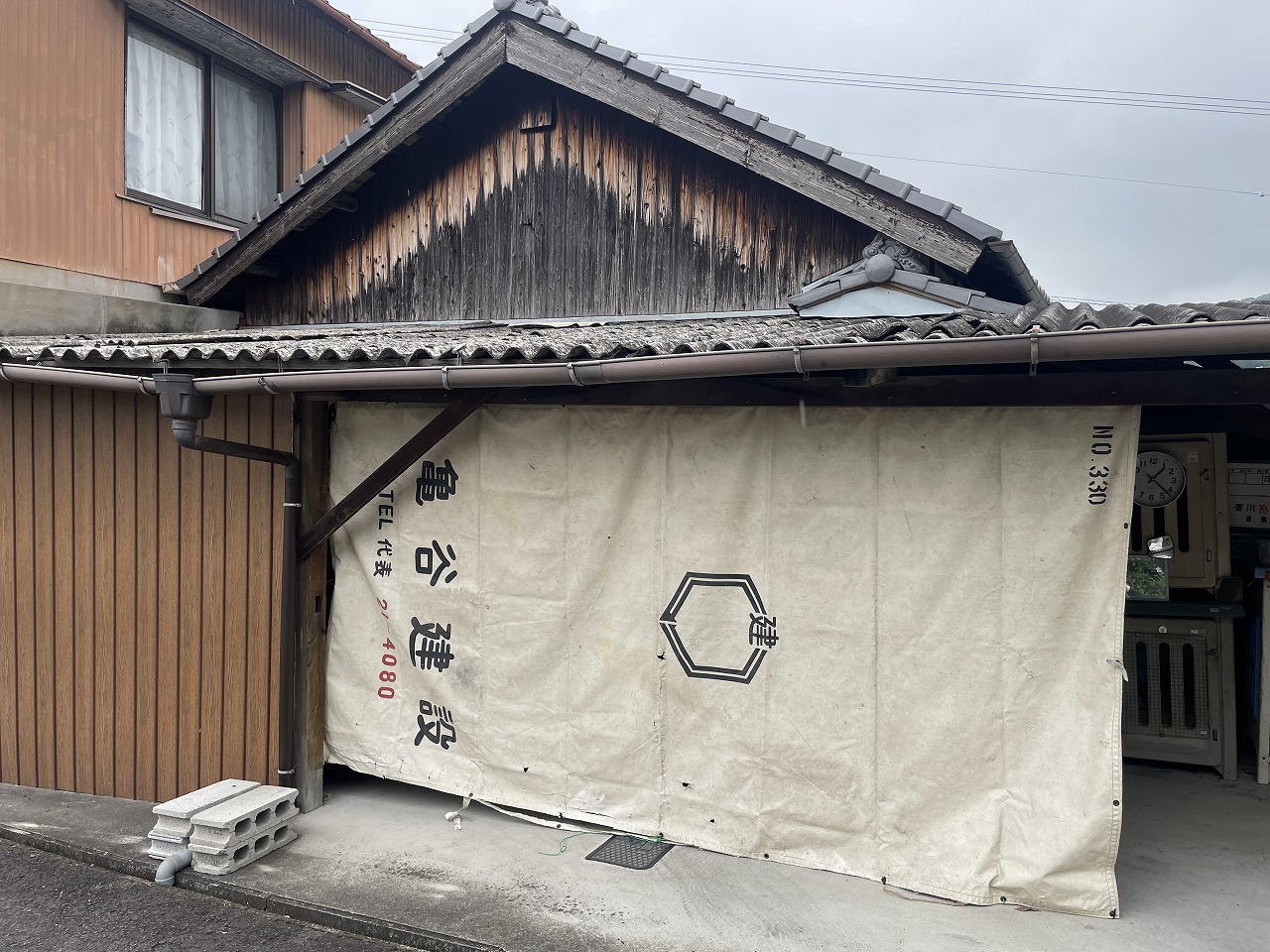 駐車場工事前の写真です。こちらは家主さんのお父さんが以前建てたものでした。