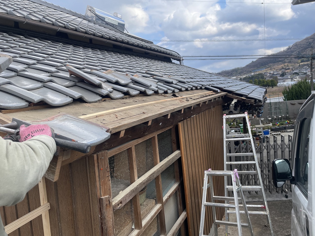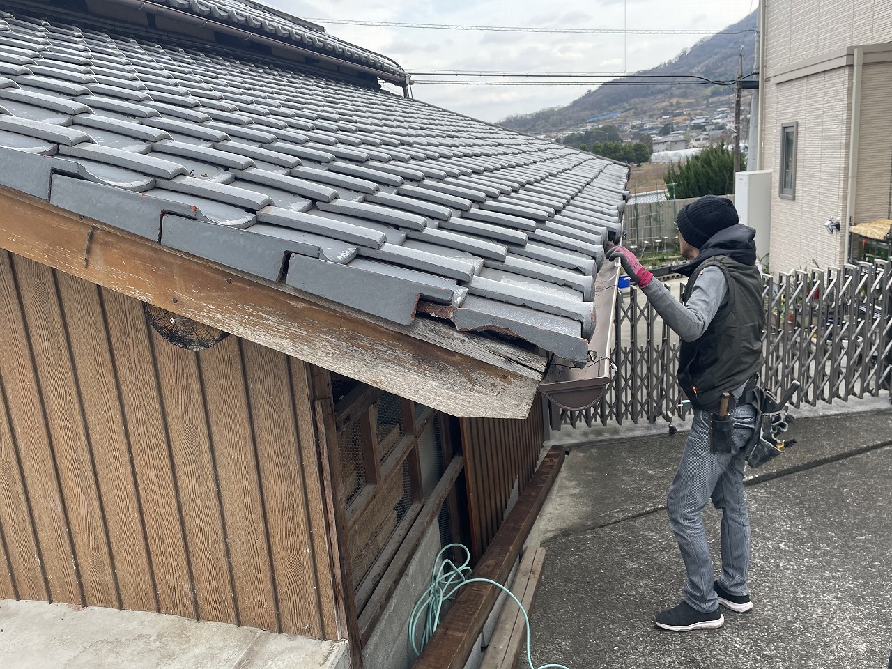 切断後には瓦の復旧をして、樋の調整をし、完成となります。