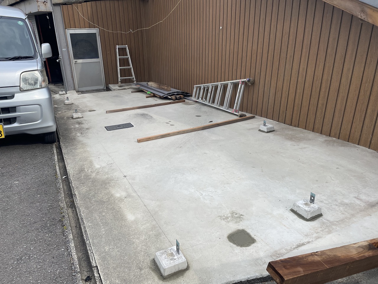 当初新車の納車が1年~1年半待ちの状態でしたが、2024年の10月にに急遽来月納車になるとの事でしたが、お施主様の都合もあり、納車後に駐車場を建て直すということになりました。