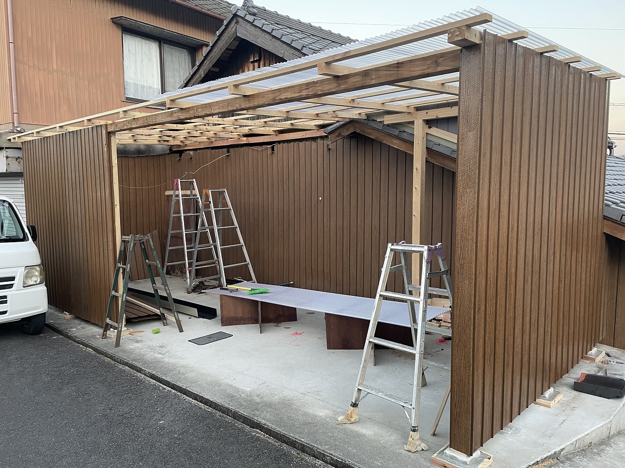 屋根の部分がポリカの波板になります。