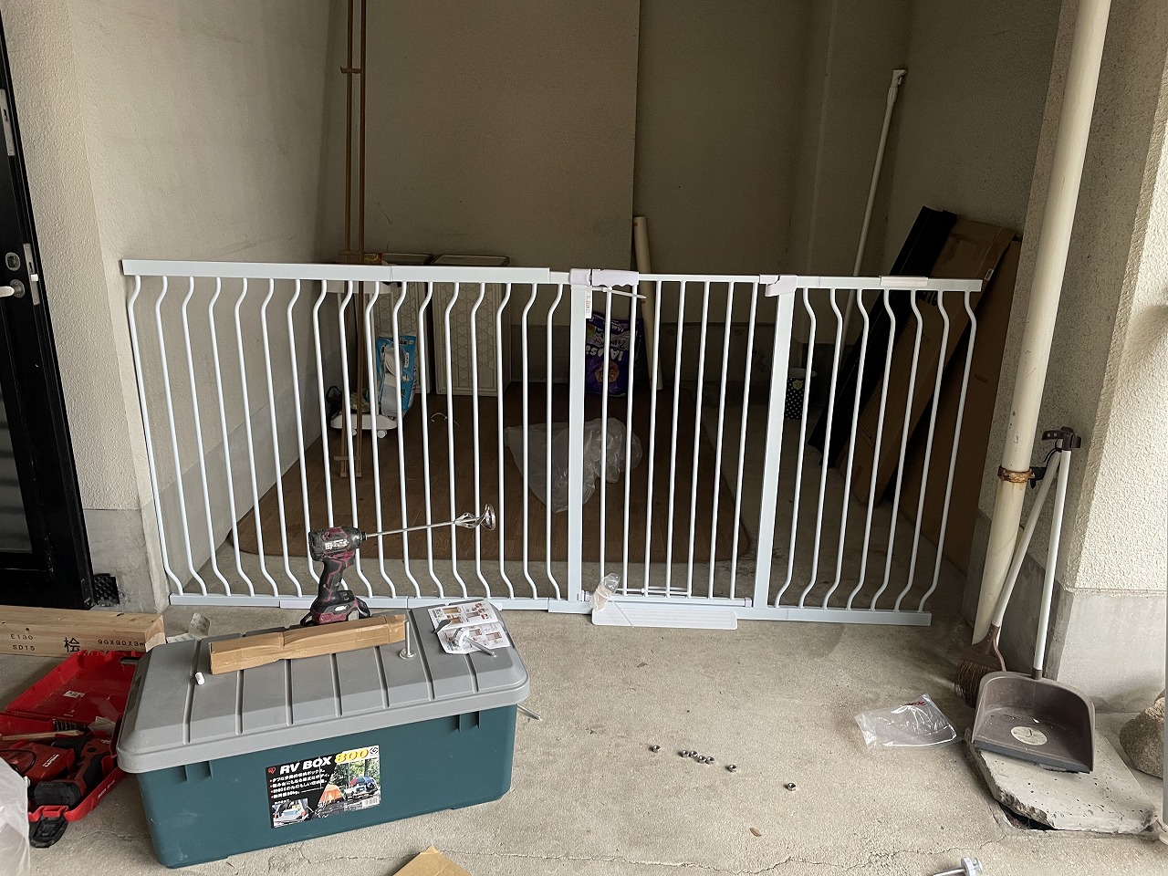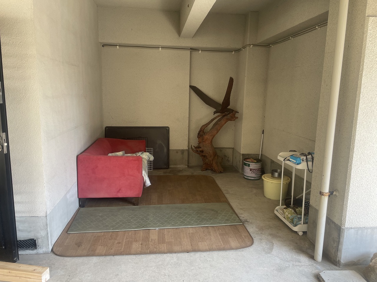 車庫の一部(物置の部分)を飼い犬のスペースにして欲しいとのご依頼があり、簡易の仕切り柵を制作することにしました。