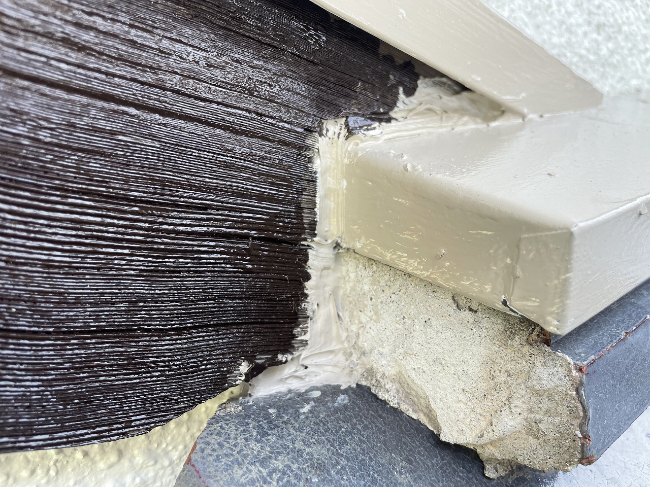 このままにしておくと雨水が入り込みますのでコーキングにて処理します。