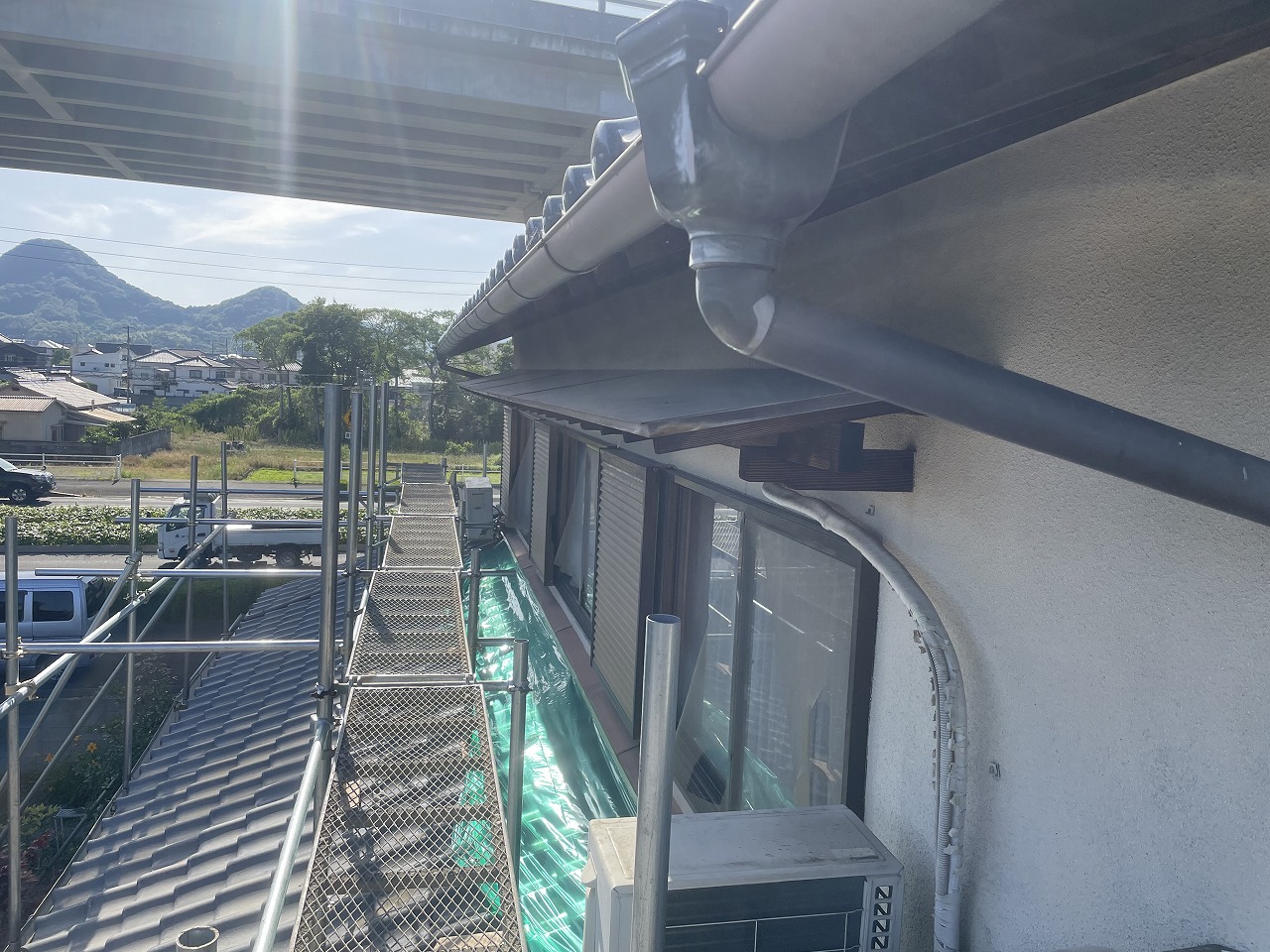 今回は樋の塗装も行いますので外壁の前に樋の塗装を行います。