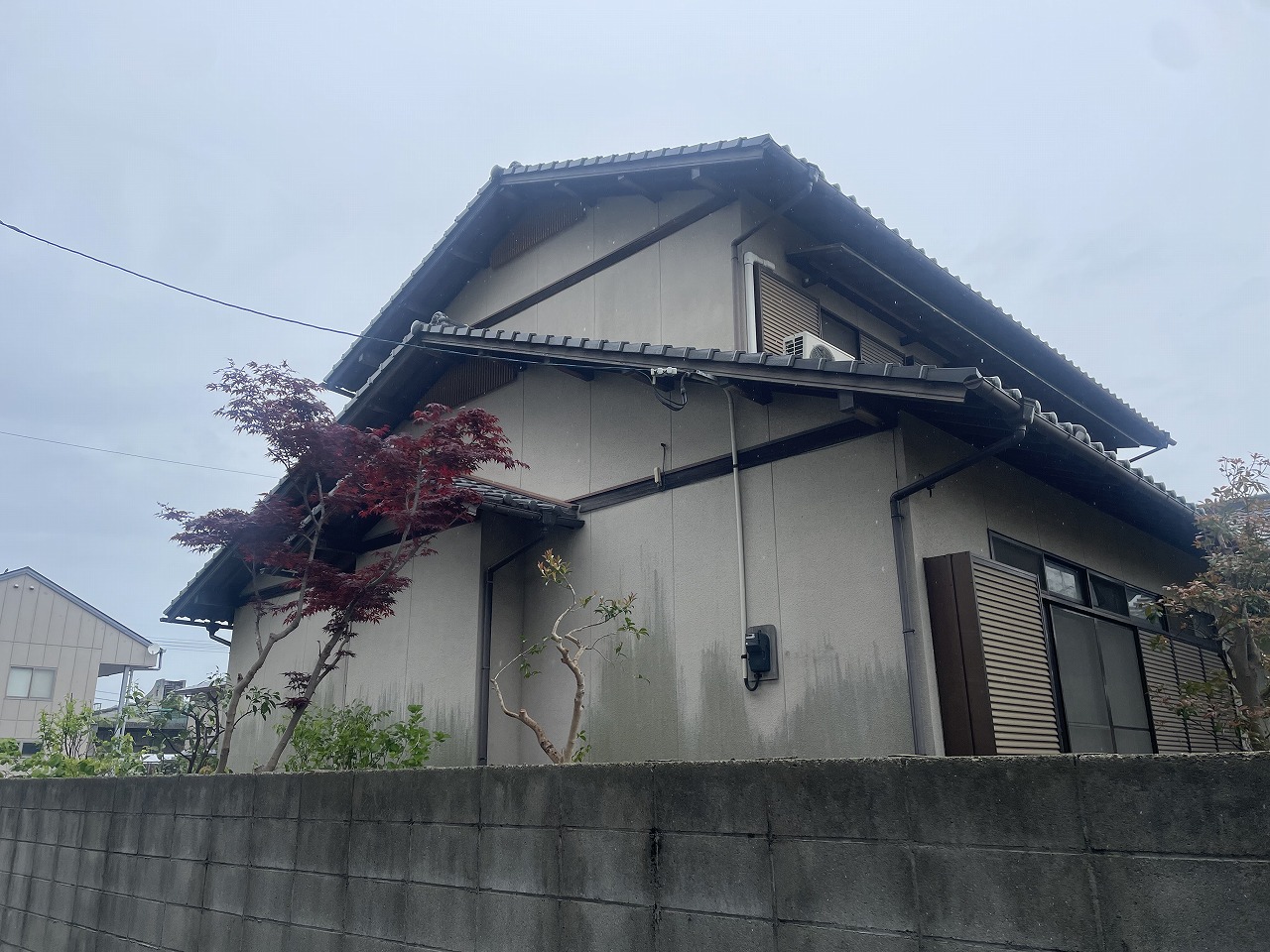モルタル外壁・雨戸・木部・軒・樋を今回塗装することになりました。