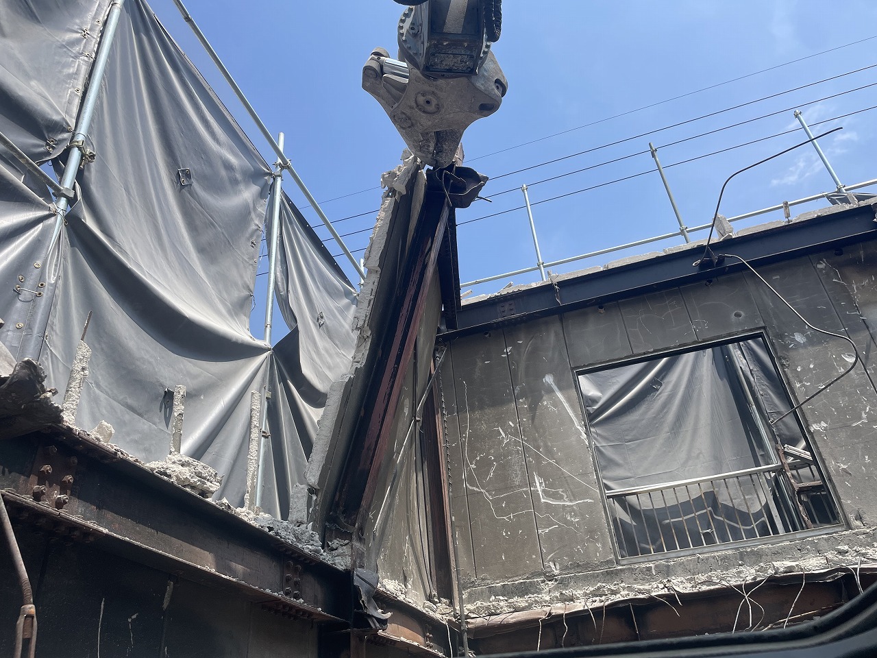 通常の4階建てS造の解体工事でも大変ですが今回は火事になった4階建てS造の解体工事をお請けすることになりました。