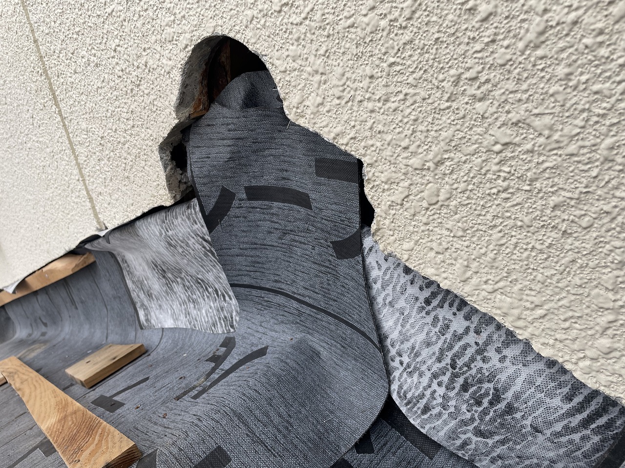 外壁材を新たに張りますので下地を仕込んでいきます。