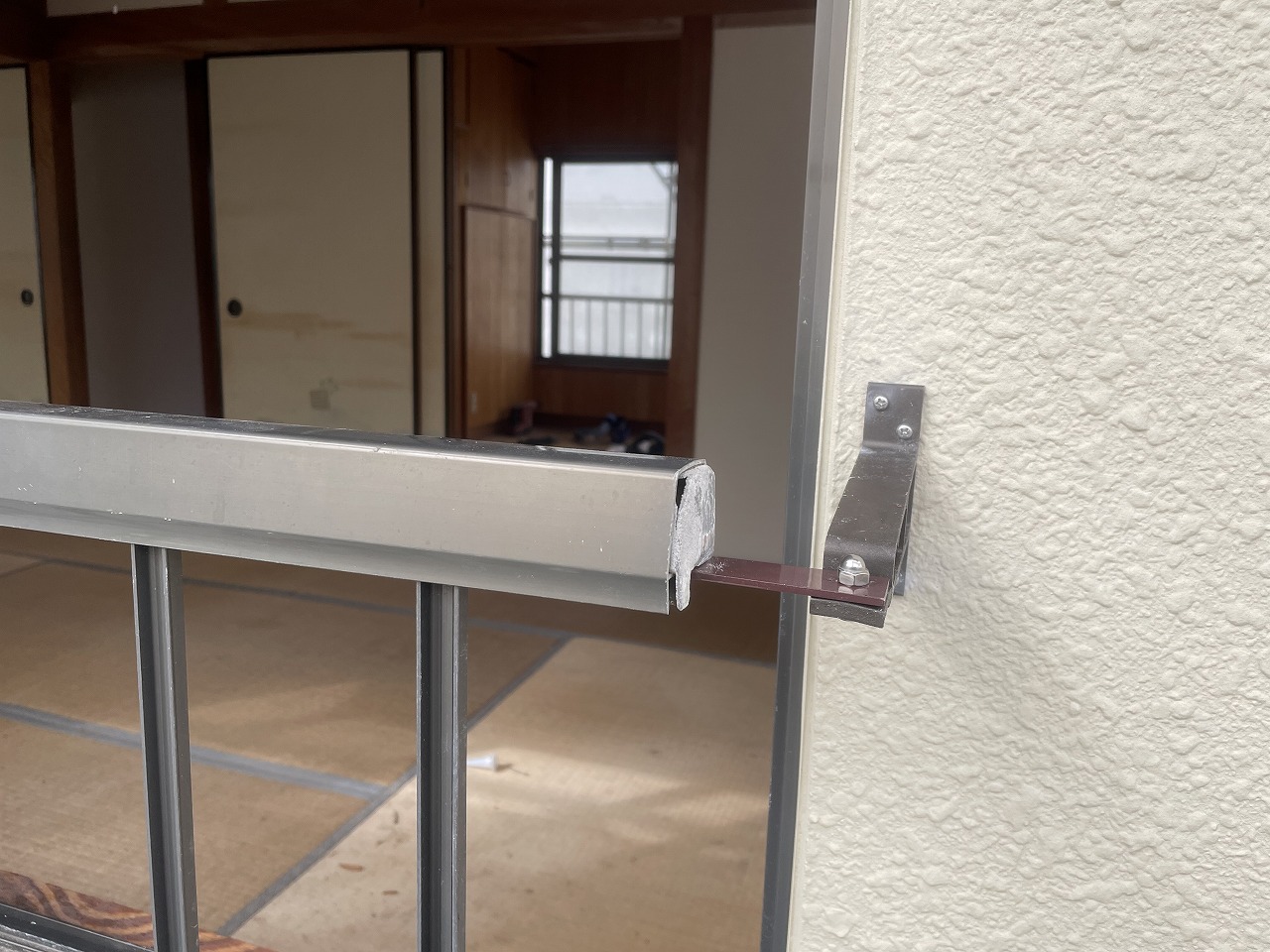 雨戸の戸袋を撤去したときに窓の手すりも外していましたので復旧していきます。