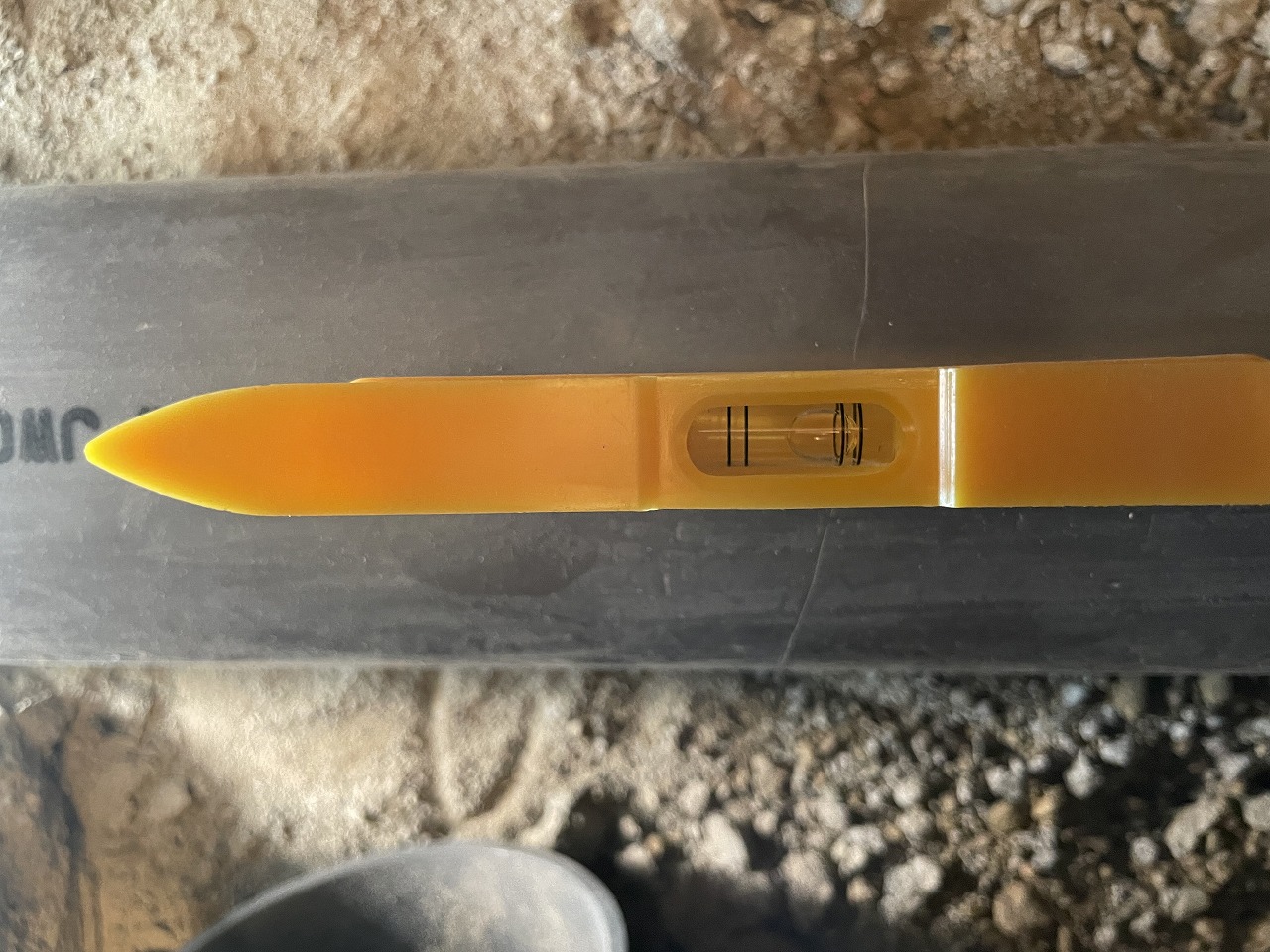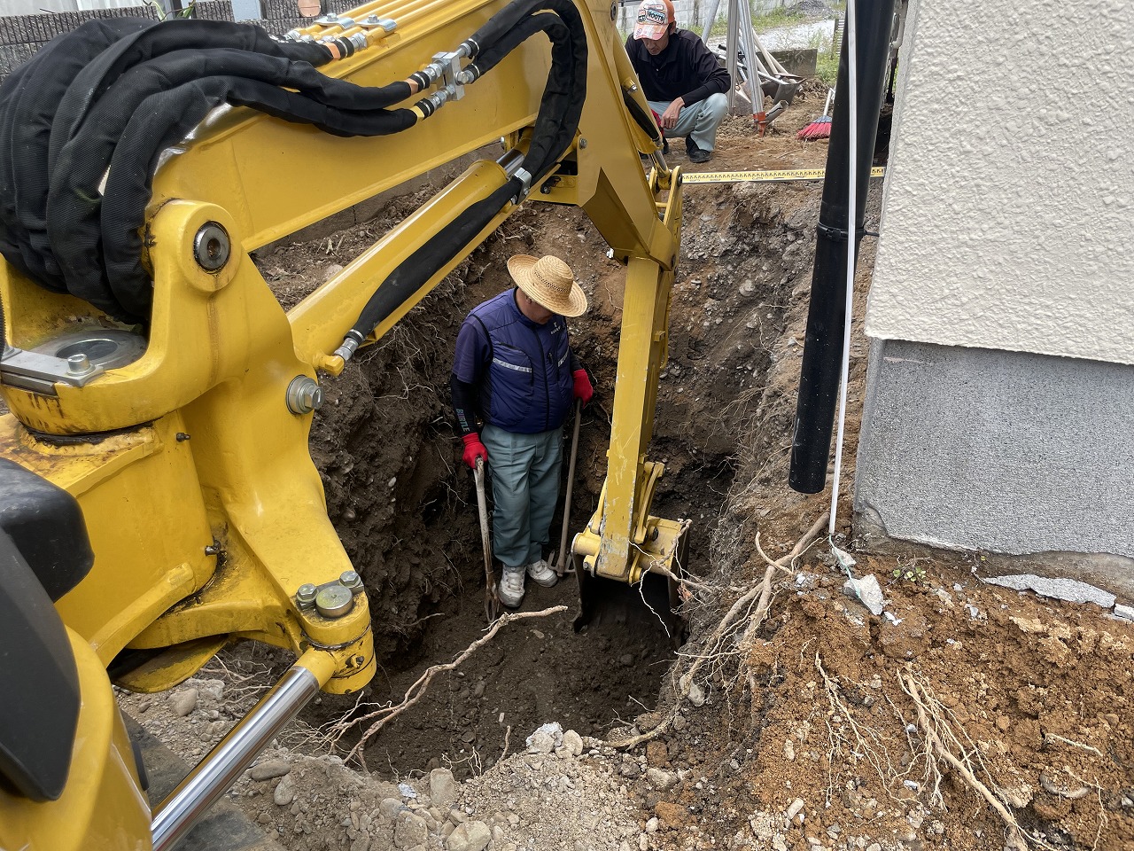 きちんと流れるか排水管の勾配を確認しながら埋戻していきます。