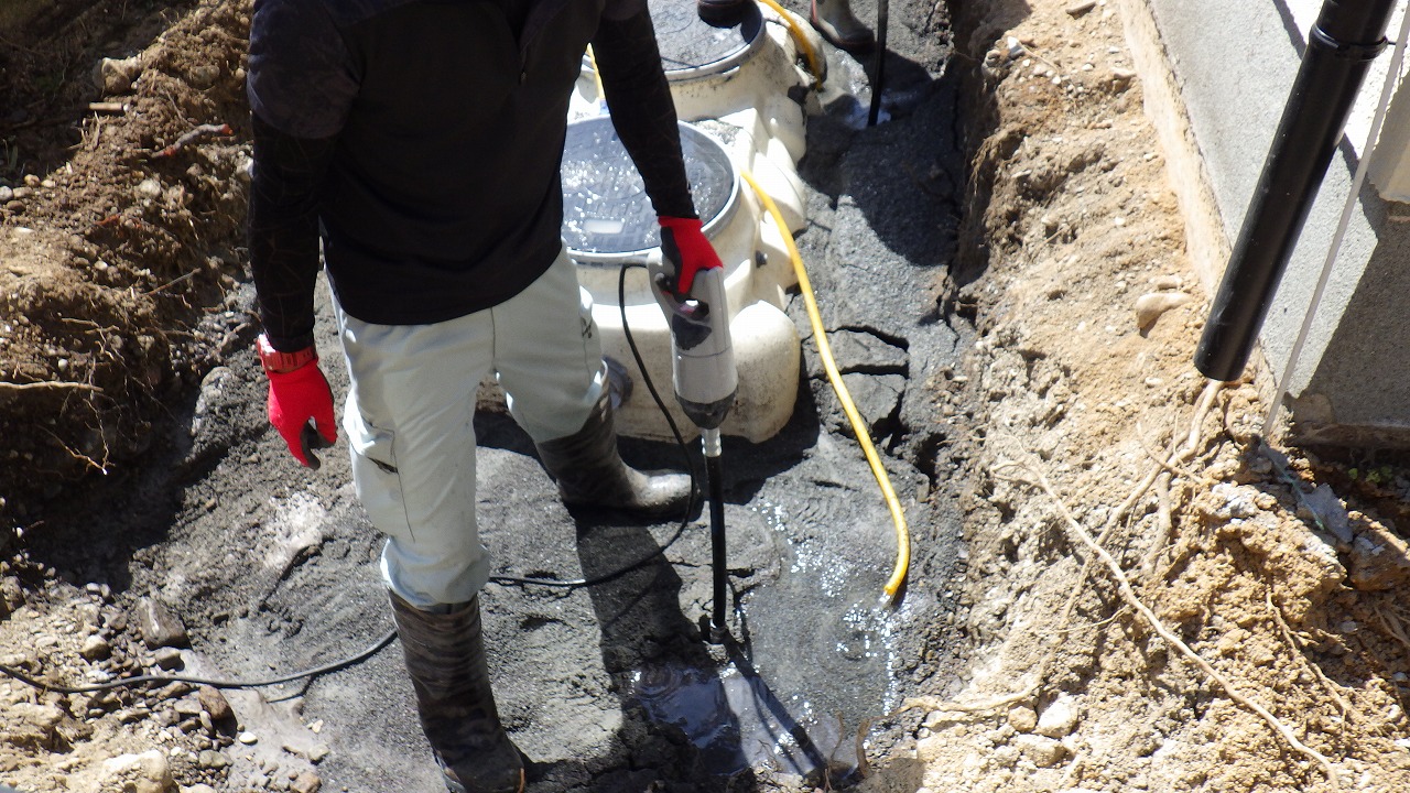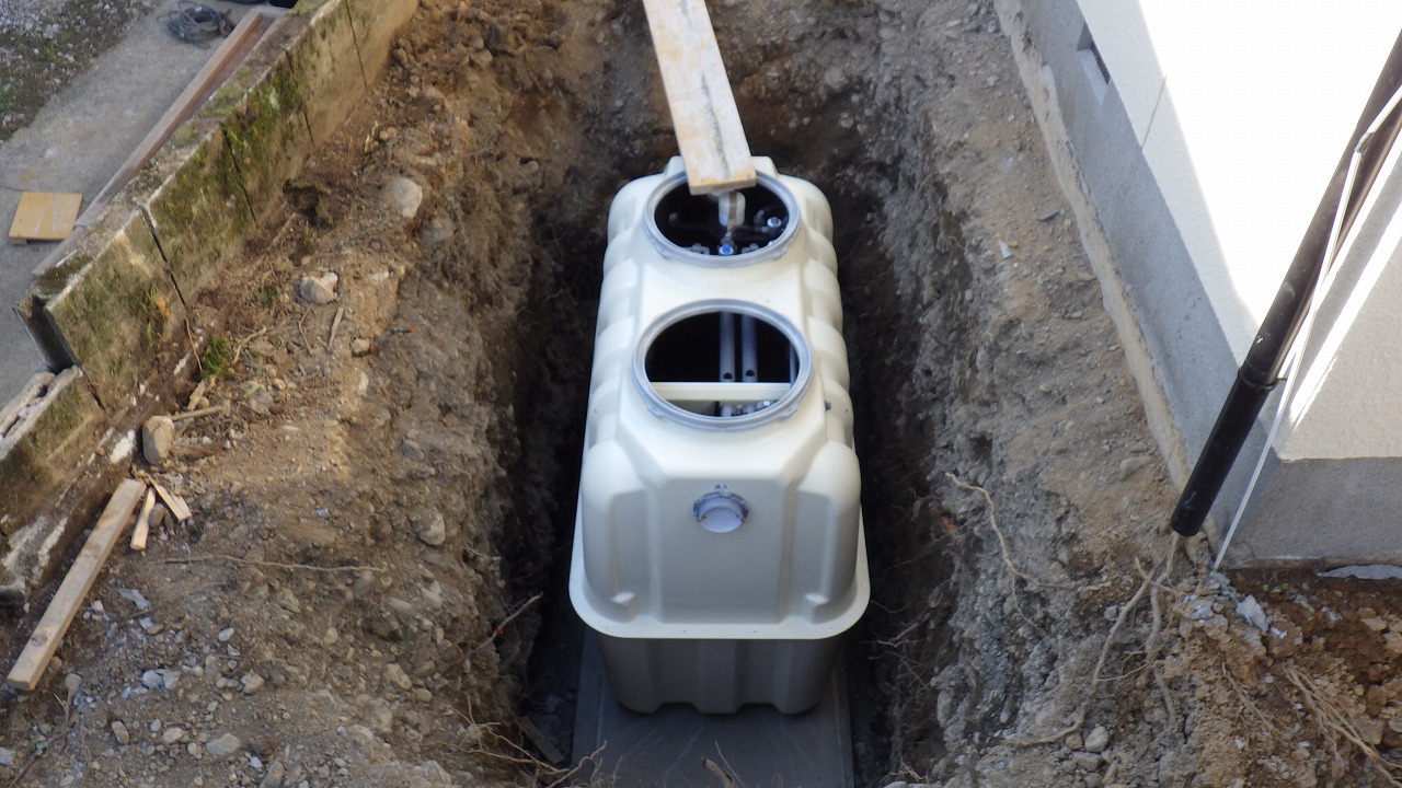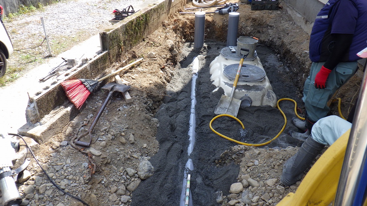 浄化槽の埋戻しには砂を使用して水締めを行います。