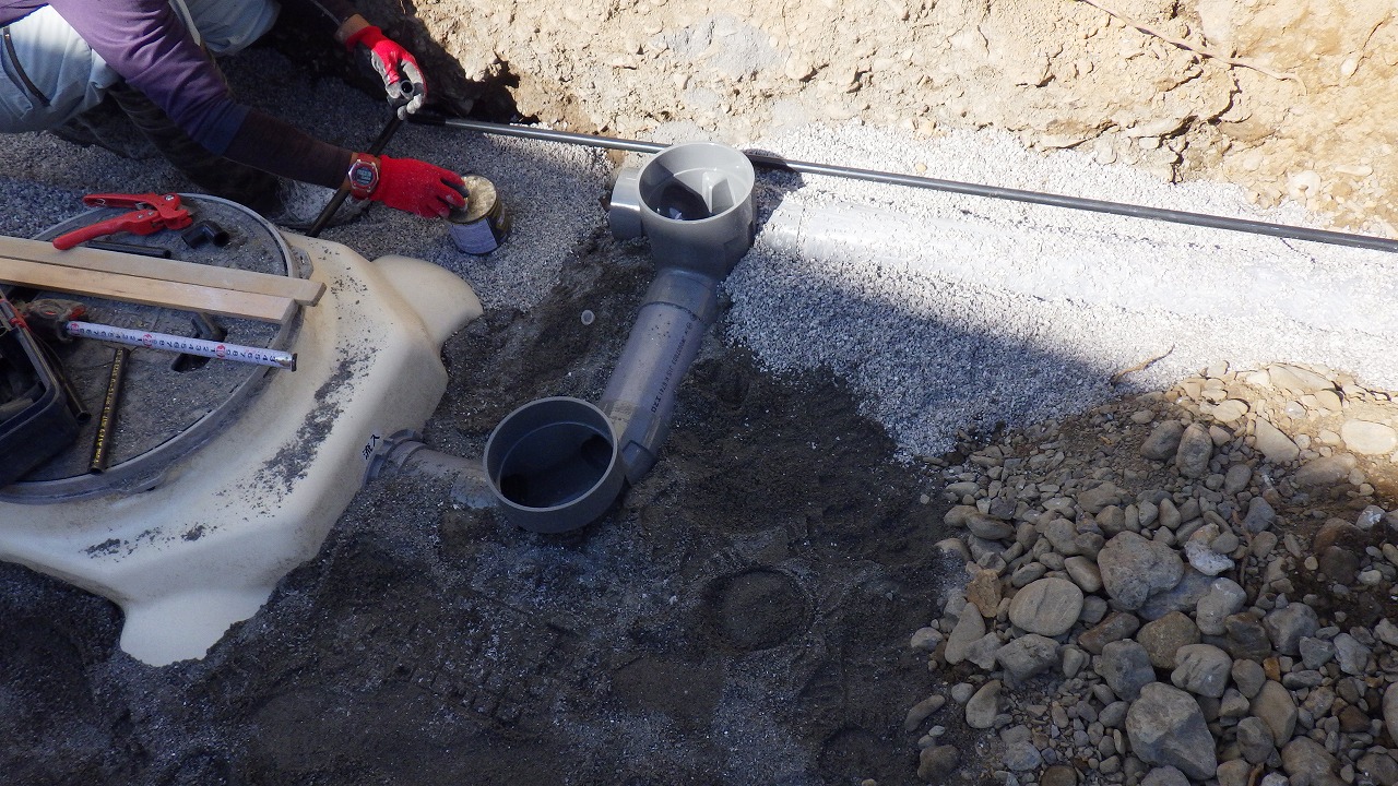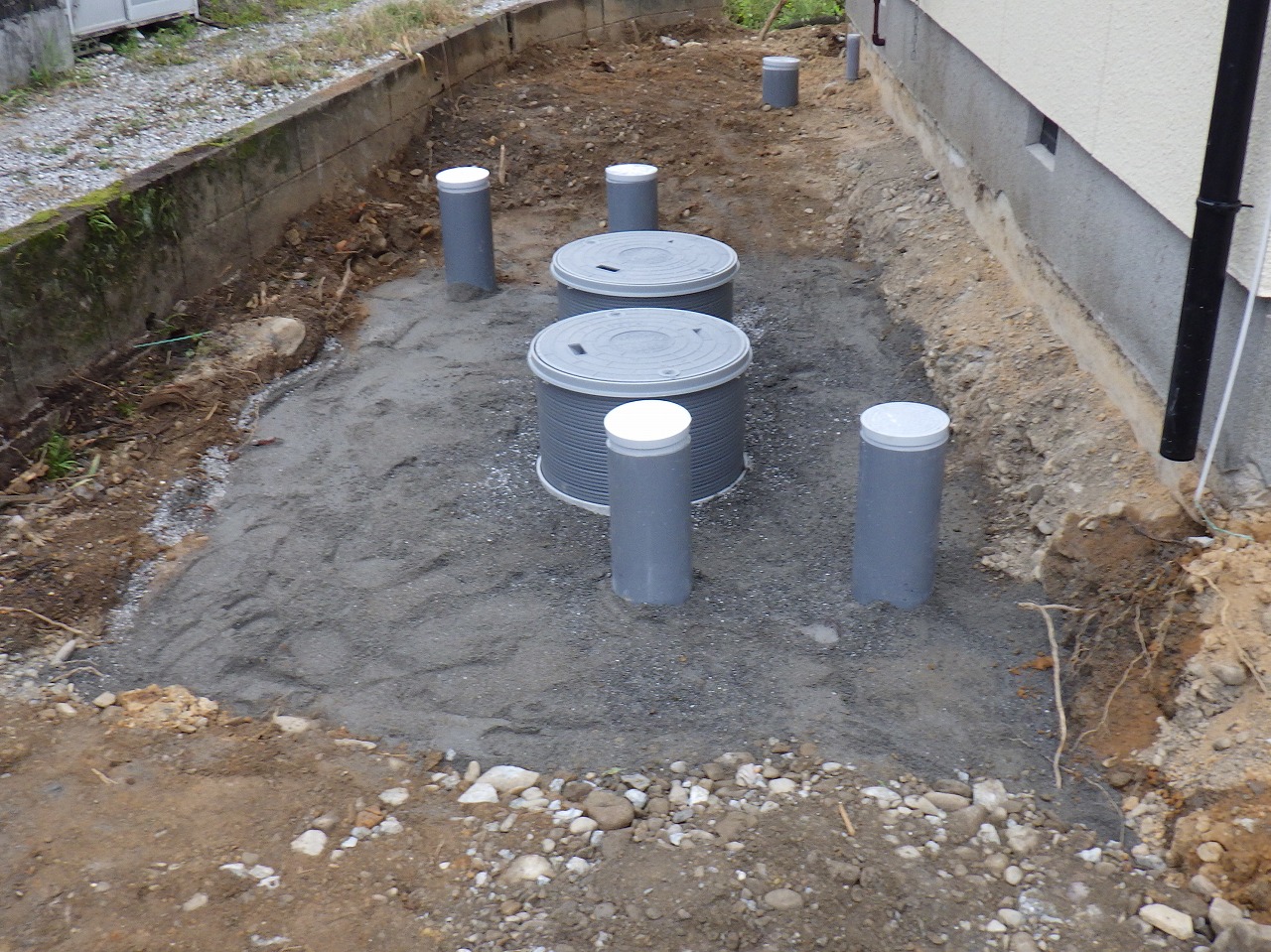 宅内の下水を全て浄化槽につなぐため配管をしていきます。