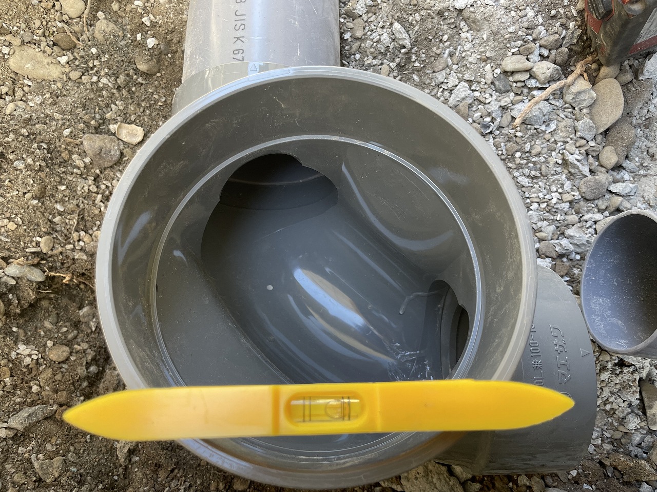 建屋内の排水管の勾配も同じく1/100を確認して接続します。