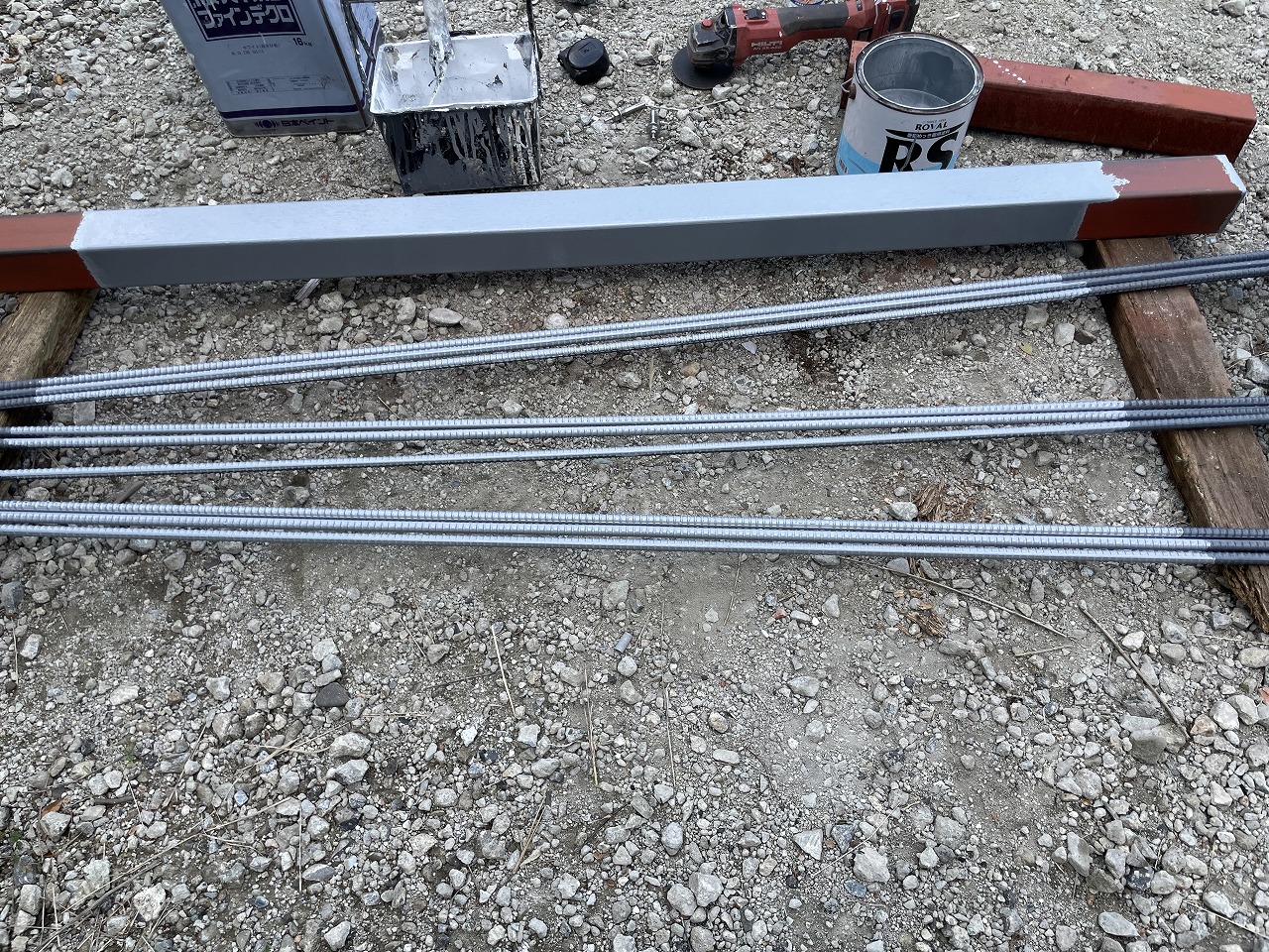 鉄部材を指定サイズにカットして防錆処理として錆止め塗料を塗ります。