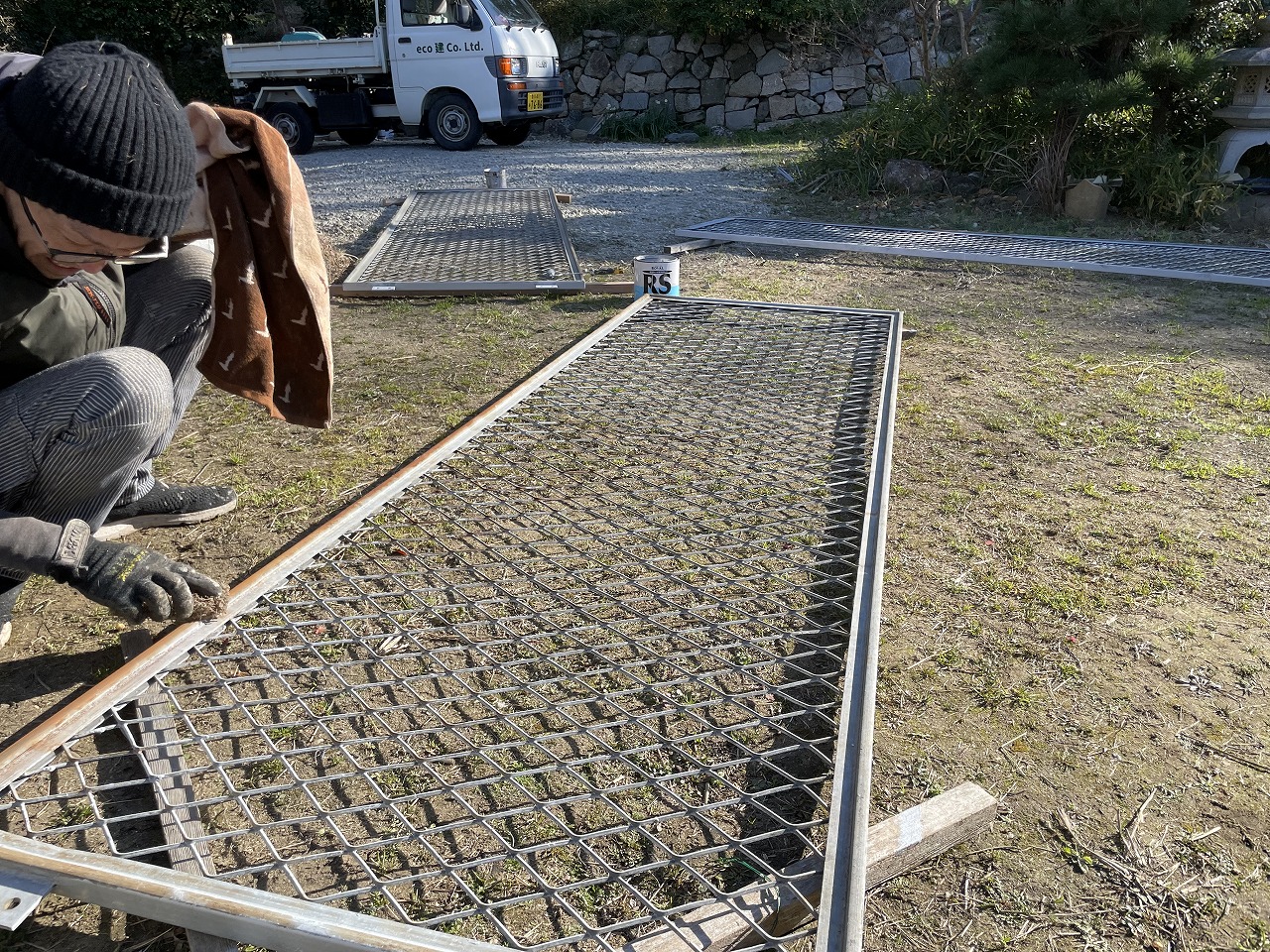 スロープ入口の車用のゲートも溶接した部分を塗料で塗って完成です。